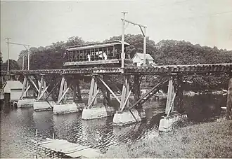 ![]() A NL&EL car crosses the Smith Cove trestle in 1906 | |