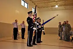 Members of the Civil Air Patrol and U.S. Air Force render a salute as honor guardsmen from Cannon Air Force Base, N.M., present the colors.