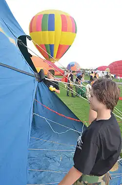 Raily Blankley, a member of the New Mexico Civil Air Patrol, holds the balloon opening as it is inflated. The New Mexico CAP’s new balloon program allows members to participate in lighter-than-air flight while furthering their aerospace education.