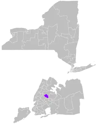 The district overlaps with New York's 6th and 14th congressional districts, and with the 27th, 30th, 34th, 35th, 36th, and 39th districts of the New York State Assembly.[5]