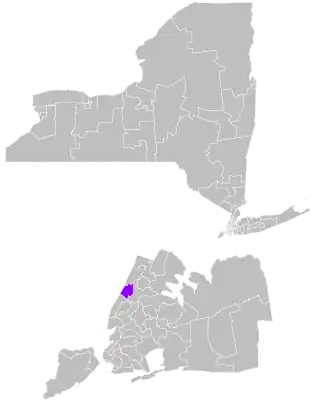 The district overlaps with New York's 10th, 12th, and 13th congressional districts, and with the 67th, 68th, 69th, 70th, 71st, and 72nd districts of the New York State Assembly.[5]