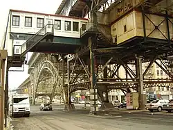 About 40% of the subway system runs on surface or elevated tracks, including steel or cast-iron elevated structures, concrete viaducts, embankments, open cuts and surface routes.[81] As of 2019, there are 168 miles (270 km) of elevated tracks.[82] All of these construction methods are completely grade-separated from road and pedestrian crossings, and most crossings of two subway tracks are grade-separated with flying junctions. The sole exceptions of at-grade junctions of two lines in regular service are the 142nd Street[83] and Myrtle Avenue junctions, whose tracks intersect at the same level, as well as the same-direction pairs of tracks on the IRT Eastern Parkway Line at Rogers Junction.[84][85]