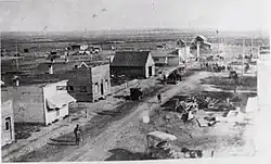 Main Street in Newdale Idaho, facing south. Photo taken approximately 1913 or 1914.