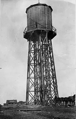 On March 17, 1916, the water system was completed, including a wooden elevated water storage tank and underground wooded water mains. The project cost $15,000 (some records say $18,000).