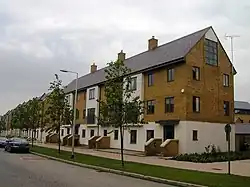 Newhall is a new housing estate within Harlow, Essex, England. In 2009, it was being built on land originally forming part of Soper Farm. A landowner led development, its planners are Roger Evans Associates, an architectural practice based in Oxford. The design of the new neighbourhood is different from the rest of the first generation New Town, featuring striking contemporary architecture. The plan for Newhall precedes government set housing density levels, current sustainability standards and introduced design codes at a time when they were not common.