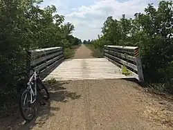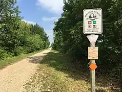 The Newton Blackmour State Trail is a crushed limestone trail in northern Outagamie County in Wisconsin, United States. The trail spans 24 miles (39 km) on a former rail corridor. Its name is derived from the four communities the trail passes through: New London, Shiocton, Black Creek and Seymour. The trail's eastern end in Seymour connects to the Duck Creek Trail, which travels east through the Oneida Nation of Wisconsin and ends in the Village of Oneida.