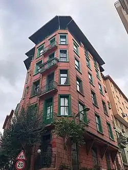 On Vali Konağı Avenue stands the house of Turkish architect Vedat Tek, designed and built by himself in 1913–14. Its facade displays many of the features of the First National Architecture style, with which he was associated, including thick lancet windows, tiled panels and protruding Seljuk style stone roundels.