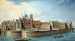 Cloister houses of Notre-Dame at the eastern (upstream) end of the Île de la Cité 1753 Musée Carnavalet