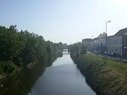 The Nieuwpoort–Dunkirk Canal (Dutch Kanaal Nieuwpoort–Duinkerke, French Canal Nieuport–Dunkerque) is a canal which links the Belgian coastal town of Nieuwpoort with the French port Dunkirk. The Nieuwpoort–Dunkirk Canal forms an extension of the Plassendale–Nieuwpoort Canal, and runs for 32 kilometres (20 mi) pretty much parallel to the coast line, within two to four kilometers from the sea.