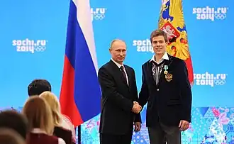 Katsalapov at the awarding ceremony for Russian athletes with President Vladimir Putin