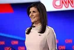 On January 31, 2023, it was reported that Haley would announce a bid for the presidency on February 15, making her the first challenger to former president Donald Trump's campaign.[35] Haley became the third Indian-American politician to seek a presidential nomination following Bobby Jindal and Kamala Harris.[36] Haley had previously claimed that she would not run for the candidacy if Trump also sought the nomination.[37]