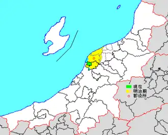 Map showing original extent of Nishikanbara District in Niigata Prefecture: