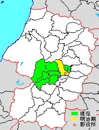 Map showing original extent of Nishimurayama District in Yamagata Prefecture