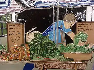 In 1969, together with a group of artists, educators and activists, Tufiño founded El Museo del Barrio.[2] The museum's façade was the site of her first public mural.[1] Tufiño's ceramic murals have been commissioned for a number of public locations including the 103rd Street and Lexington Avenue subway station,[3] the Third Street Music School, and LaGuardia Community College. Tufino's ceramic mural for P.S. 12 depicts scenes from Brooklyn's West Indian Day Parade, held annually on Labor Day.[4]