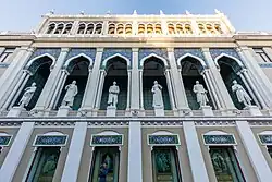 The sculptures of the eminent Azerbaijani poets and writers were placed on the façade of the museum on the following way: Muhammad Fuzuli (sculptor: F. Abdurrahmanov), Molla Panah Vagif (sculptor: S. Klyatskiy), Mirza Fatali Akhundov (sculptor: P.Sabsai), Khurshidbanu Natavan (sculptor: Y. Tripolskaya), Jalil Mammadguluzadeh (sculptor: N.Zakharov), and Jafar Jabbarly (sculptor: S. Klyatskiy). There are 120,000 museum exhibits stored in the fond of the museum.[15]