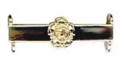 Award of the decoration for service in active military operations is indicated by distinguishing insignia which indicate the arm of the service in which the recipient was serving at the time of the action for which the decoration was conferred. These insignia are struck in 9 carat gold and are worn on the ribbon, above any bars which may have been awarded.[2]