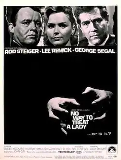 No Way to Treat a Lady is a 1968 American psychological thriller film with elements of black comedy, directed by Jack Smight, and starring Rod Steiger, Lee Remick, George Segal, Eileen Heckart, Murray Hamilton, and Michael Dunn. Adapted by John Gay from William Goldman's 1964 novel of the same name, it follows a serial killer in New York City who impersonates various characters in order to gain the trust of women before murdering them.