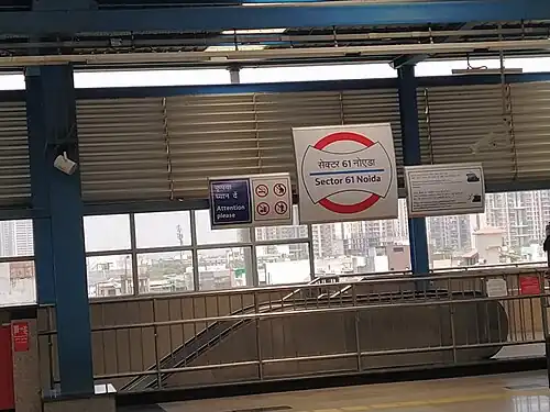 The Noida Sector 61 is a metro station on the Blue Line extension of the Delhi Metro railway, in the city of Noida in India.