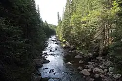 The last 9.3 kilometres (5.8 mi) of the course of the Noire River cross the Montmorency Forest. From the confluence of the Black River, the current flows over 61.9 kilometres (38.5 mi) generally south along the course of the Montmorency River, to the northwest bank of the St. Lawrence River.[1]
