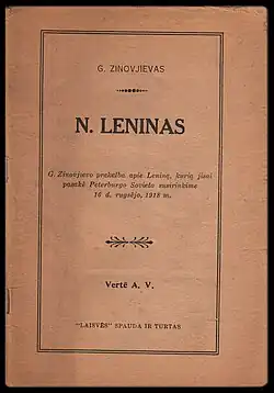 Laisvē, like many other non-English newspapers associated with the Communist Party, also published books and pamphlets, such as this 1919 biography of Lenin by Grigorii Zinoviev.