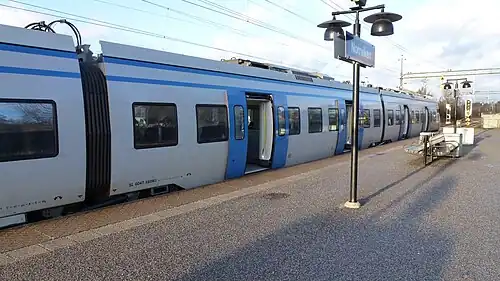 Norrviken is a station on Stockholm's commuter rail network, located 16.9 km north of Stockholm Central Station in the Norrviken district of Sollentuna Municipality. The station consists of a single island platform with a ticket hall at the southern end, accessible via an underground pedestrian tunnel. As of 2015, the station had approximately 2,000 boardings per weekday.[1]