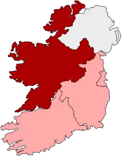 From 2009 it comprised the counties of Cavan, Clare, Donegal, Galway, Leitrim, Longford, Mayo, Monaghan, Roscommon, Sligo and Westmeath; and the city of Galway.[1]