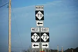 NC 711 was established in 1951 or 1952 as a reestablishment of a primary highway between Lumberton and Pembroke. The route previously existed as US 74, but was downgraded to a secondary road when it was rerouted south onto new bypass south of the Lumber River in 1949. The original routing was from NC 72 to NC 710.[2] Between 1963-1968, NC 711 was extended south, overlapping NC 72 to its current southern terminus with I-95/US 301.[3][4]