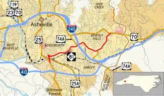 North Carolina Highway 81 (NC 81) is a primary state highway in the U.S. state of North Carolina that runs entirely in Asheville and Buncombe County from US 25 to US 70.