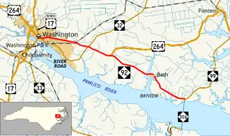 North Carolina Highway 92 (NC 92) is a primary state highway in the U.S. state of North Carolina. It runs through connecting Washington and Bath, entirely in Beaufort County.