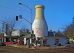 By the 1920s, the Garland District began to take shape. It grew into the neighborhood's main center and remains to this day and important and historic commercial district in Spokane. In 1921 the Masonic Temple was built at Garland Ave. and Wall Street.[6] The Benewah Milk Bottle building at Garland and Post was built in 1935. In 1945 the Garland Theater opened at Garland and Monroe. All buildings remain to this day.