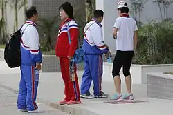 Notable athletes on the North Korean roster included weightlifting champions Om Yun-chol (men's 56 kg) and Rim Jong-sim (women's 75 kg), twins Kim Hye-gyong and Kim Hye-song in the women's marathon, pistol shooter and three-time Olympian Kim Jong-su, and former gymnastics champion Hong Un-jong in the women's vault. Weightlifting rookie Choe Jon-wi was selected by the committee to lead the North Korean delegation as the flag bearer in the opening ceremony.[1][2]