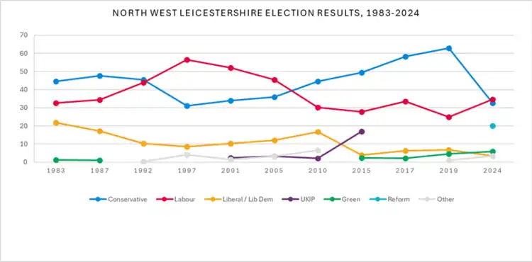North West Leicestershire constituency was created in 1983 from parts of the seats of Bosworth to the south and Loughborough to the east.