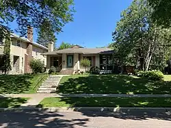 Former Minneapolis councilman Mark Kaplan had known about the crash, having moved to the Lynnhurst neighborhood, and after the dedication of a memorial to the victims of the collapse of the I-35W Mississippi River bridge in downtown Minneapolis on August 1, 2007, decided that the victims of Flight 307 should be memorialized as well.[7] With help from surviving family members of the passengers and crew, he made a successful push for a memorial on the site, across the street from the site of the Doughty family home, which Diane found "wonderful".[8] Raising $3,500 USD for a 2.5 t (5,500 lb) boulder and cast aluminum plaque, the memorial was formally dedicated on August 27, 2011, with Diane and surviving family members present. The address of the rebuilt house on the site of the Doughty family house was changed after the crash from 1116 to 1114 Minnehaha Parkway West.
