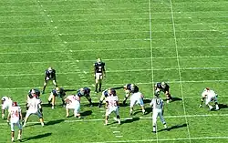 In the 2001 season, the Fighting Irish, led by fifth-year head coach Bob Davie, had a record of five wins and six losses.[1] A day after the season ended, athletic director Kevin White announced to the media that Davie would not be retained as head coach of Notre Dame.[2] A week after the firing of Davie, George O'Leary, seven-year head coach of Georgia Tech, was hired by Notre Dame for the head coaching position.[3] Despite being a controversial choice criticized by some in the media,[4] and Notre Dame being criticized for making a premature decision,[5] O'Leary was happy to accept what was called his dream job.[6] Five days after being hired, however, O'Leary resigned from the position.[7] It was later revealed that O'Leary had lied on his résumé about receiving a varsity letter and a master's degree while in school.[8] While O'Leary was criticized for lying,[9] some in the media said that his resignation gave Notre Dame a chance to make a better decision.[10] Two weeks after O'Leary resigned, Notre Dame signed Tyrone Willingham, the seventh-year coach of Stanford, to a six-year contract.[11] Willingham became the school's first African American head coach in any sport.[12] He immediately made changes to the Irish program, including changing the long used Irish offense from an option attack to a West Coast type.[13] He also made his first-year Fighting Irish team only the second in Notre Dame history to pick captains on a game-by-game basis.[14]