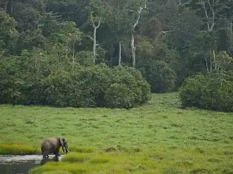 Nouabalé-Ndoki National Park is a national park in the Republic of the Congo. Established in 1993, in the northern provinces of Congo, it is home to forest elephants, great apes, including western lowland gorillas and the eastern sub-species of chimpanzees and bongo. The forests have a rich biodiversity of 300 bird species, plus 1,000 plant and tree species which include endangered mahoganies.[1][3][4][5]