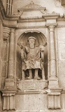 Statue of Nuño Rasura at the church of Bisjueces, Merindades, Burgos province.