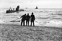 The most notable event in the submarine's history was the grounding near Krynica Morska on November 28, 1957. The commander of the ship made an unsuccessful attempt to get off the shoal, regardless of the extremely difficult conditions (strong wind, high waves, and low temperature). During the operation, two crew members lost their lives, and the ship was forced by the sea onto the beach. The submarine remained there until a rescue operation conducted by several units allowed Kaszub to be pulled into deeper water. Following this, the submarine was repaired and returned to service.