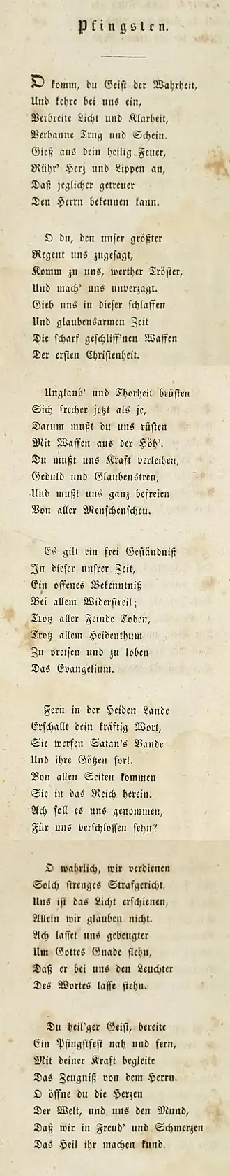 "O komm, du Geist der Wahrheit" in Psalter und Harfe, 1834