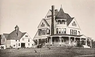The estate of founder-developer Oren D. Allyn in 1891; not pictured here is the houses's extensive rose garden. Though the barn has long since been demolished, the house still stands today, with much of its land developed as subdivisions.