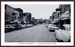 Oakland City was laid out and platted in 1856.[4] It was probably named for the presence of oak trees.[5] The Oakland City post office was established in 1860.[6]