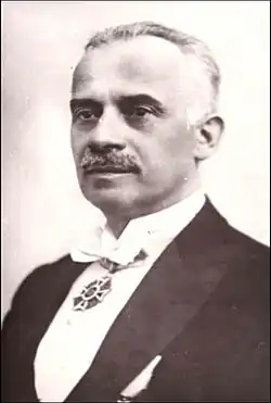 In 1918, following the union of Transylvania with Romania, Tăslăuanu was elected a member of the Great Romanian National Council by the assembly at Alba Iulia that approved the union. He also remarried; his new wife was Fatma Sturdza, whom he met on the front as a nurse. In 1919, he was elected to the Chamber of Deputies for the Tulgheș seat. Also elected vice president of the Romanian Writers' Society, he moved Luceafărul to Bucharest and founded a publishing house in Cluj. In 1920, he held two ministerial posts: Commerce and Industry (March 13-November 16) and Public Works (November 16-December 31). He resigned due to vehement attacks from the National Liberal Party-dominated press.[15] Initially a member of the Romanian National Party, in 1920, persuaded by Goga, he joined Alexandru Averescu's People's Party and served in the latter's cabinet.[16]