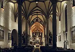 The construction subsequently lasted until at least the beginning of the 16th century, which was confirmed by dendrochronological research of the truss above the sanctuary (dating to the years 1499 to 1500).[15]: 13–17  The altar was made between 1500 and 1510.[15]: 39