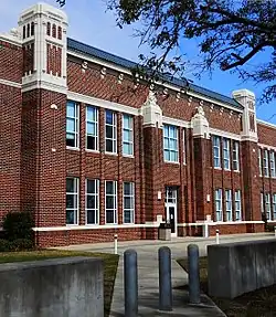 Old Gulfport High School, located at 2010 15th Street, in Gulfport, Mississippi, is a two-story, brick building that was used as a public school from the 1920s until the latter half of the 20th century.[7] The structure was designed in Tudor architectural style by architect Noah Webster Overstreet and was built in 1923 by Algernon Blair Construction Company[2] The building complex was designated a Mississippi Landmark in 1999.[8]