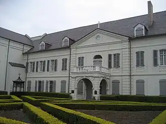 "This is the finest surviving example of French colonial public architecture in the country", states the National Park Service.[2] It is by some accounts the oldest structure in New Orleans, built between 1748 and 1752. It was declared a National Historic Landmark in 1960.[2][4] The convent and its associated school, Ursuline Academy, moved downriver to a site on Dauphine Street in the 9th Ward in 1824, turning over the original convent to the bishop of New Orleans, Louis William Valentine DuBourg. It was referred to as the "Archbishop's Palace" following New Orleans's elevation to an archdiocese.[3] In 1912, the convent moved uptown to State Street.