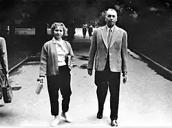 Lepeshinskaya married a Soviet intelligence MGB general Leonid Raykhman (known as the handler of Nikolai Kuznetsov). He was arrested on 19 October 1951 as an alleged participant in the fabricated Zionist Plot in MGB. Lepeshinskaya claimed that her appeals to Stalin saved the life of her husband.[8][9] In March 1953, after Stalin's death, Raykhman was freed, rehabilitated and appointed the head of MVD Control Commission. In August 1953, he was arrested again that time for his own fabrications of criminal cases, tortures of prison inmates and other violations of the "Socialist Law". He was sentenced to five years in prison in August 1956 but amnestied in November 1956. After that, he did research work in astronomy.[10]