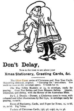 3. ^ "War Chest Christmas Card Competition". The Sydney Mail. Vol. XI, no. 287. New South Wales, Australia. 26 September 1917. p. 33. Retrieved 31 July 2023 – via National Library of Australia.