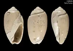 Shell of Olivella klappenbachi (holotype at MNHN, Paris)