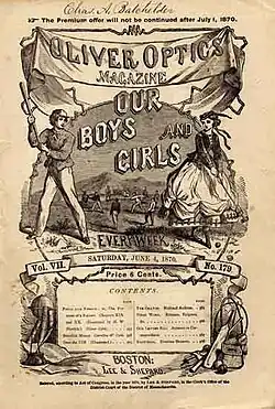 Oliver Optic's Magazine: Our Boys and Girls (sometimes, Oliver Optic's Magazine) was a 19th-century American weekly children's magazine. It was edited by boys' book writer, William Taylor Adams. Adams used the pen name "Oliver Optic". At its demise in December 1875, it was being published monthly. It became the most popular children's monthly in the United States.[1]