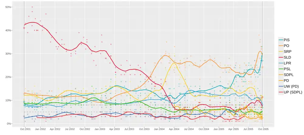 In the run up to the 2005 Polish parliamentary election, various organisations carried out opinion polling to gauge voting intention in Poland. Results of such polls are displayed in this article.