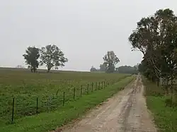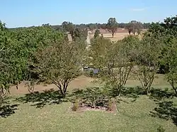 The other driveway runs south–north off former Cobbitty Road (now Oran Park Drive) to the homestead. This was lined in part in the mid-late 20th century with a mixture of eucalypt species.[2] Existing eucalypts (mature in 1947) west of this western, newer driveway.[1]